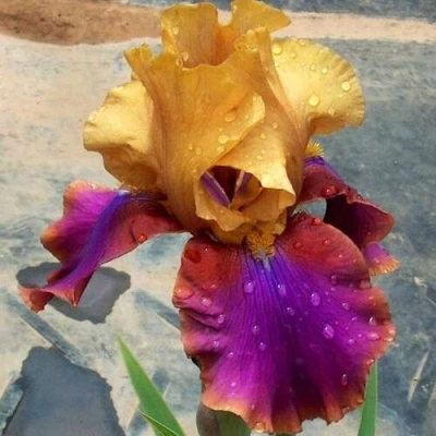 Гала Мадрид – это не просто сорт, это смелый штрих в садовом дизайне. Великолепный бородатый ирис с эффектной двухцветной окраской — верхние лепестки желтые, а нижние — глубокие бордово-пурпурные, словно бархат с винным отливом. В центре цветка – солнечная бородка, создающая резкий и притягательный контраст. Сорт для тех, кто не боится акцентов и ценит уверенное цветение без лишнего ухода.